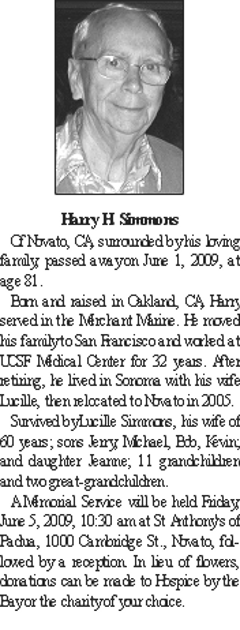 | Simmons, Harry Hudson | 1927-06-08 | 2009-06-01 |
